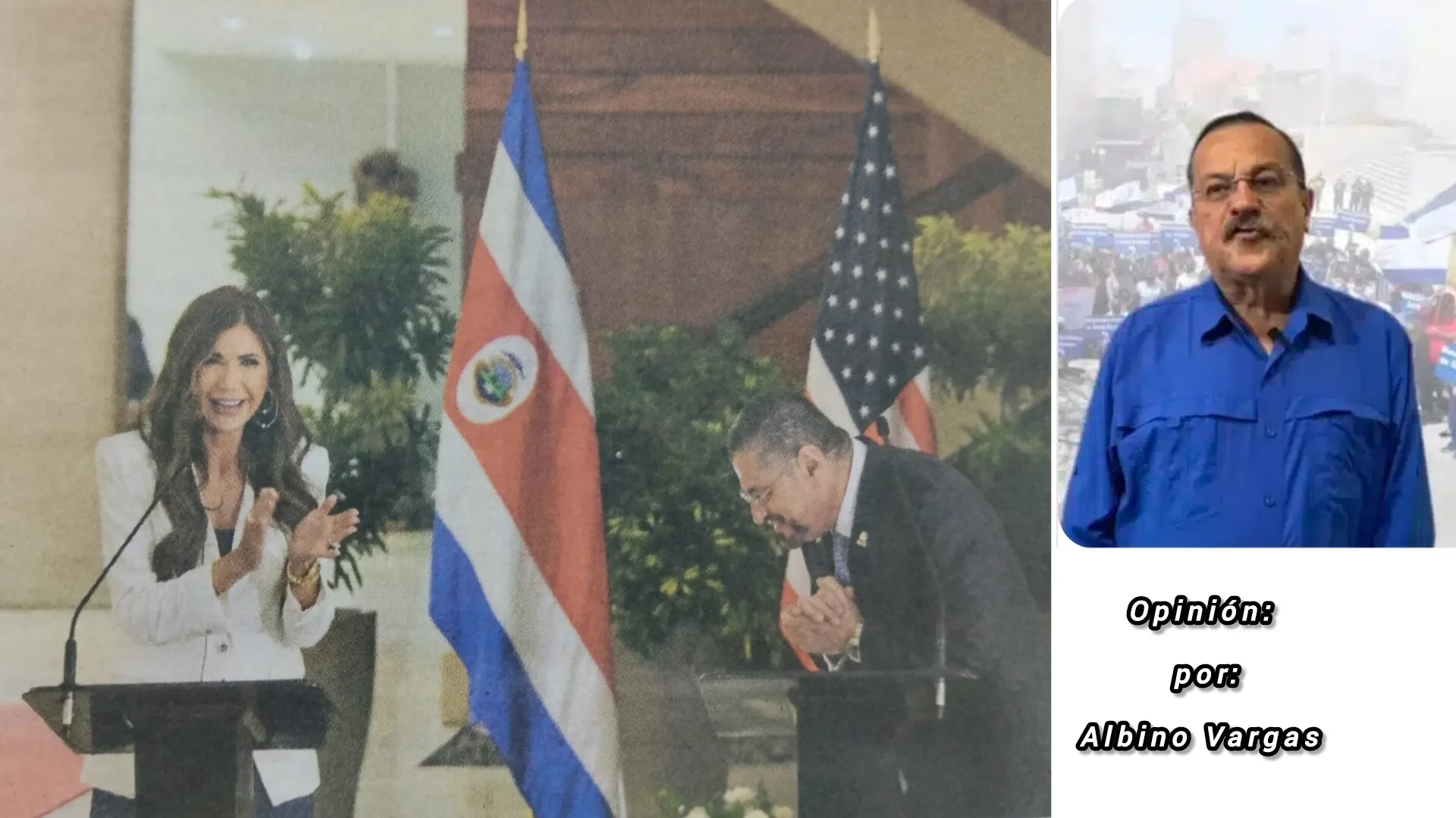 *Rodrigo Chaves Robles le rinde reverencia a la señora Kristi Noem, representante del Imperio que visitó Costa Rica en días…