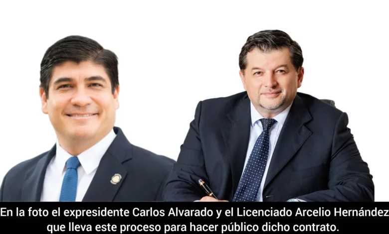En la foto el expresidente Carlos Alvarado y el Licenciado Arcelio Hernรกndez que lleva este proceso con el propรณsito hacer pรบblico dicho contrato.