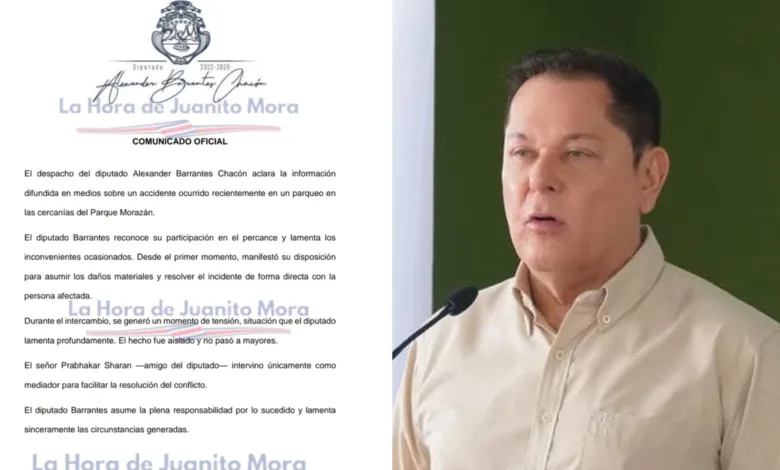 El diputado Barrantes reconoce su participación en el percance y lamenta los