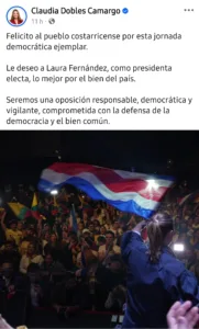 Le deseo a Laura Fernández, como presidenta electa, lo mejor por el bien del país.