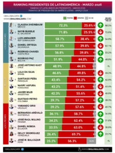 De acuerdo con la más reciente medición de la consultora CB Global Data durante el período de marzo 2026.