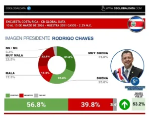 El mandatario costarricense nuevamente aparece en el lugar número 5, con una aprobación del 56,8%.