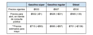 **Los precios estimados para mayo consideran información con corte a este miércoles 8 de abril al mediodía.