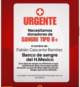 Les pido de favor acercarse al Banco de Sangre del Hospital México y nos ayuden a que Fabián pueda salir pronto y victorioso de este proceso.